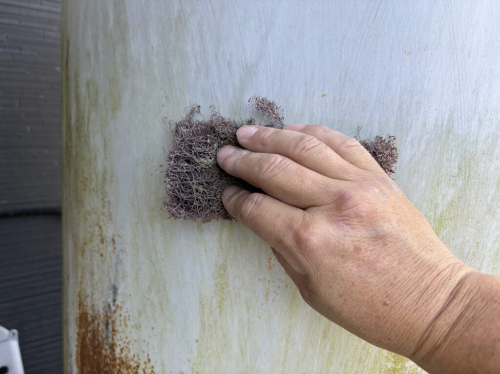① 下地処理・・・錆を落としケレン清掃致します。塗装面の汚れ、油分、旧塗膜などを除去し