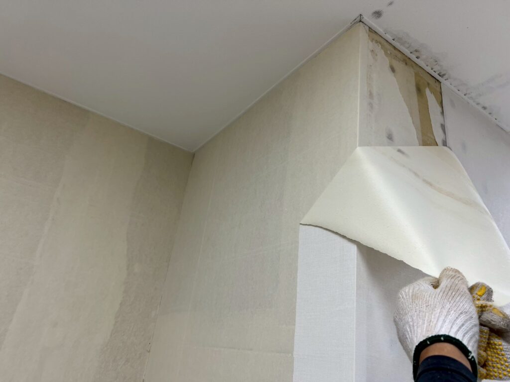 漏水した箇所のボード張替えや壁紙クロス張替えの工事を行いました。