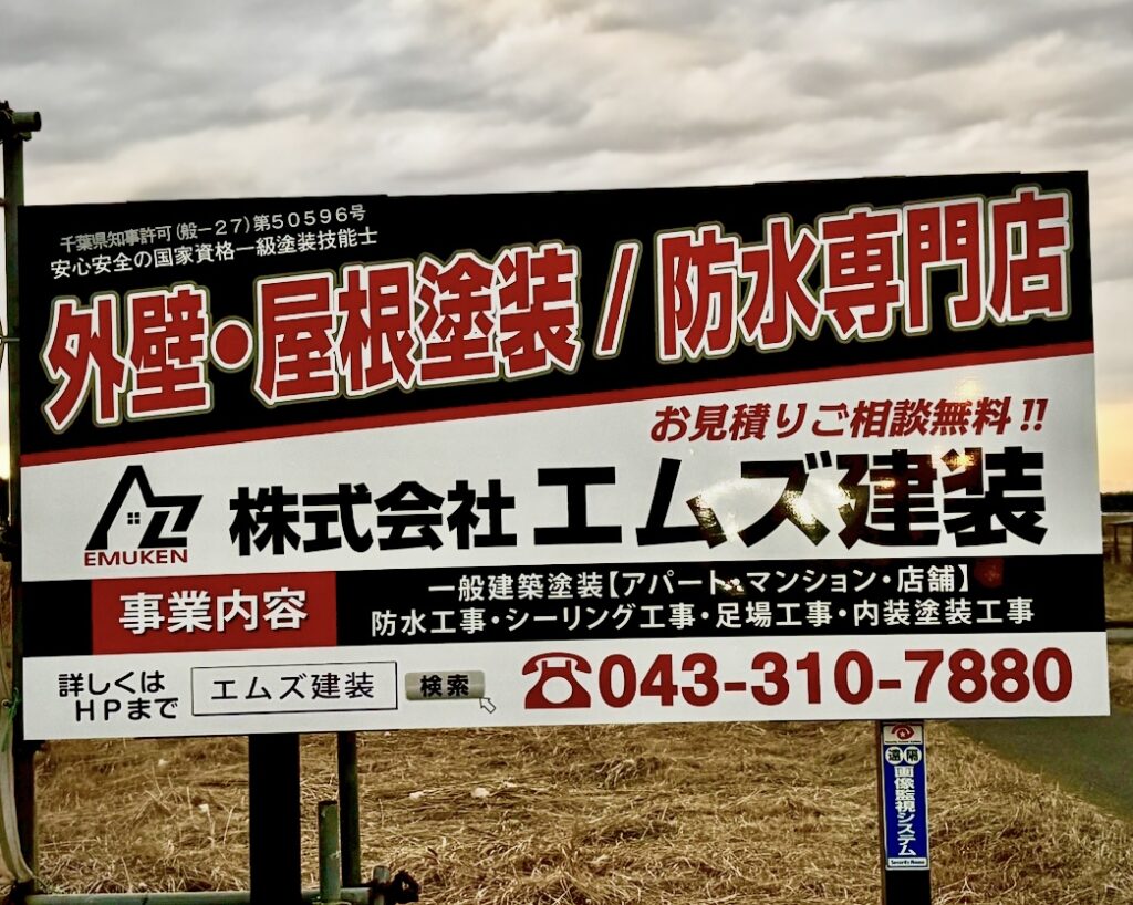 酒々井町上岩橋スーパータイヨー様近くにある資材置き場兼作業倉庫に新たに看板を設置致しました!