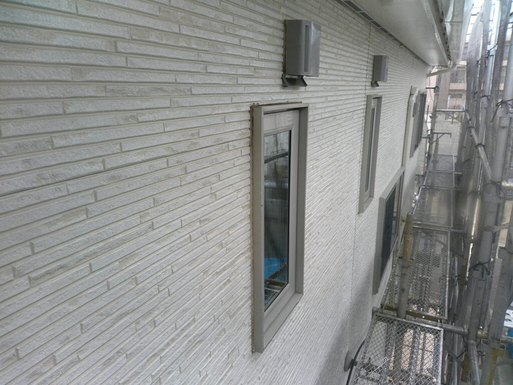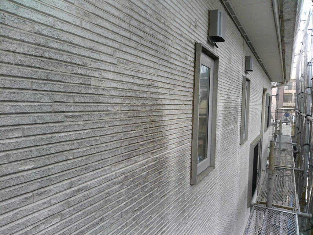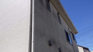 外壁にチョーキング(白化)がある場合いや、10年~15年以上の経年劣化がある場合いはクリヤー塗装が密着しない為、不向きです。