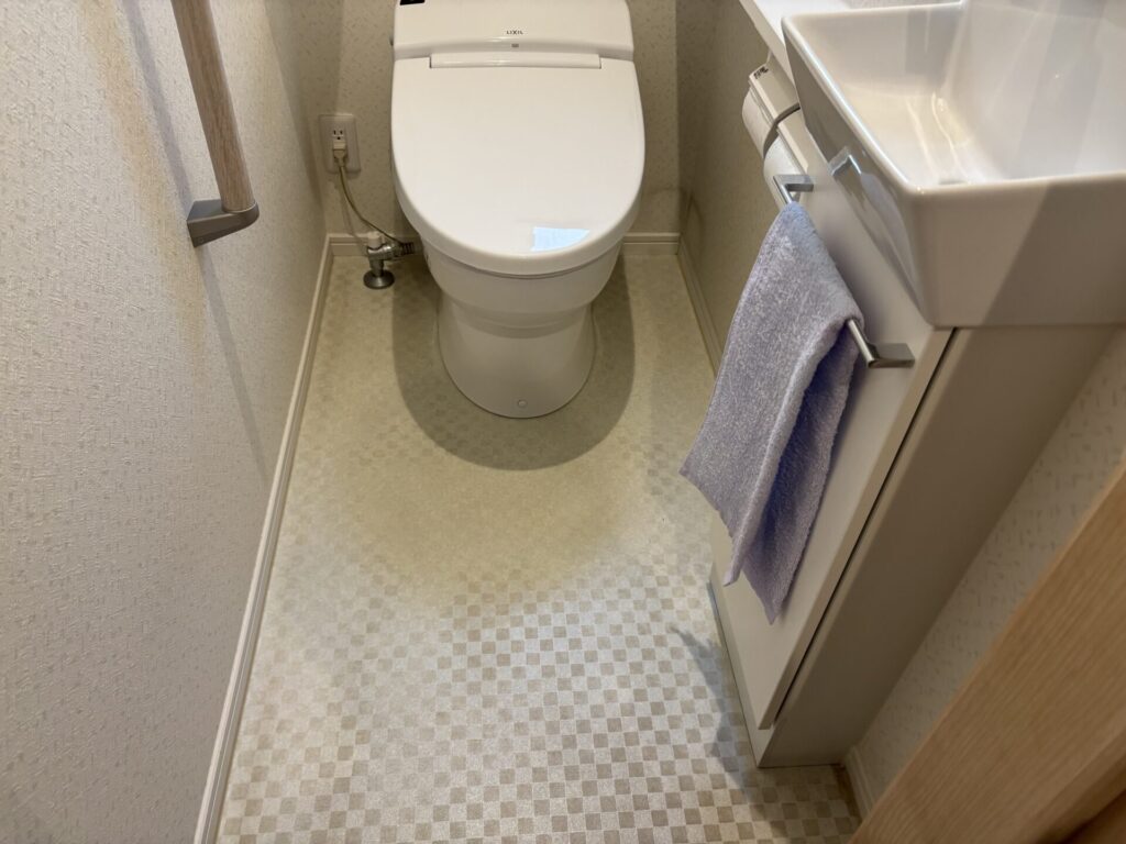 合わせて、トイレ便器の交換及び床クッションフロアの張替えもご依頼頂き施工させて頂きました。