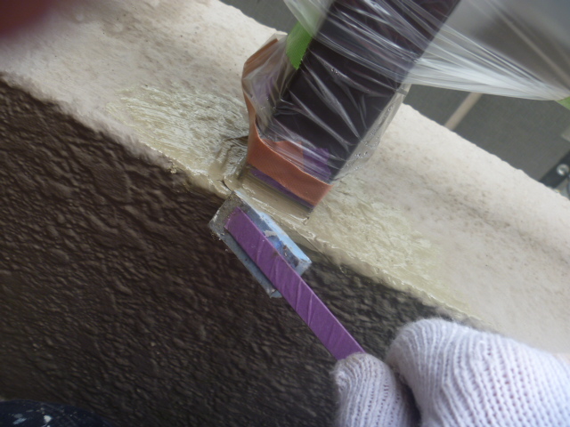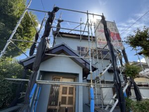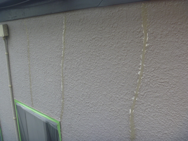 千葉市K様邸 外壁塗装工事 シーリング コーキング 付帯部塗装 防水 厚付け仕様 鎖骨ローラー パターン付け 微弾性フィラー プレミアムシリコン SR-421 仮設足場 モルタル壁塗装