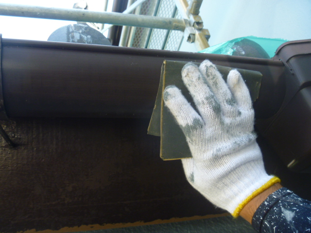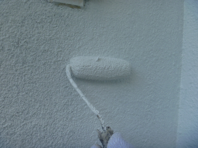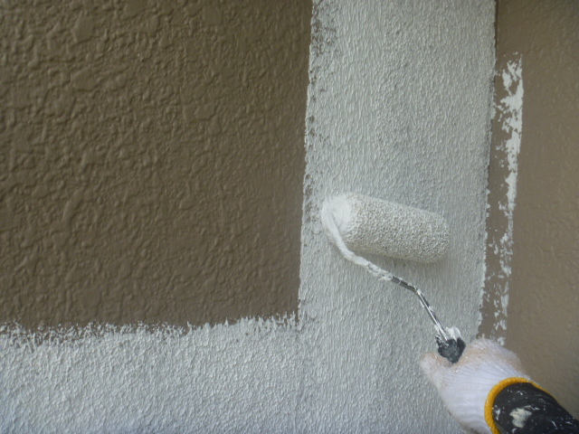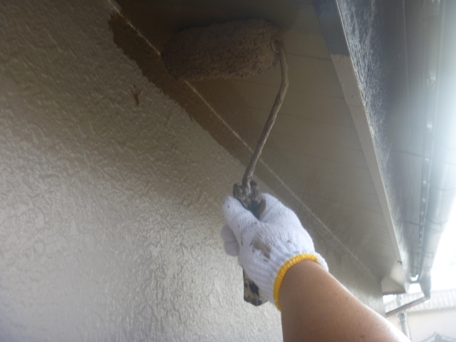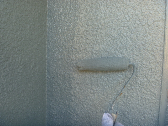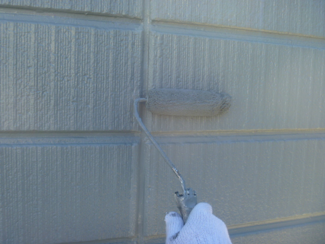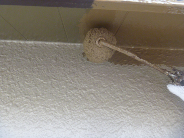 外壁塗装で厚膜に仕上げる為の特殊なローラーを使った工法です。