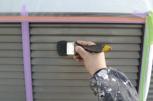 外観の雰囲気を崩さずに、今の感じを活かしつつきれいにしてほしいとのご要望でしたので、色の選定時も色見本板を何枚か並べて実際に外壁との色味を比べて、色を決定させて頂きました。