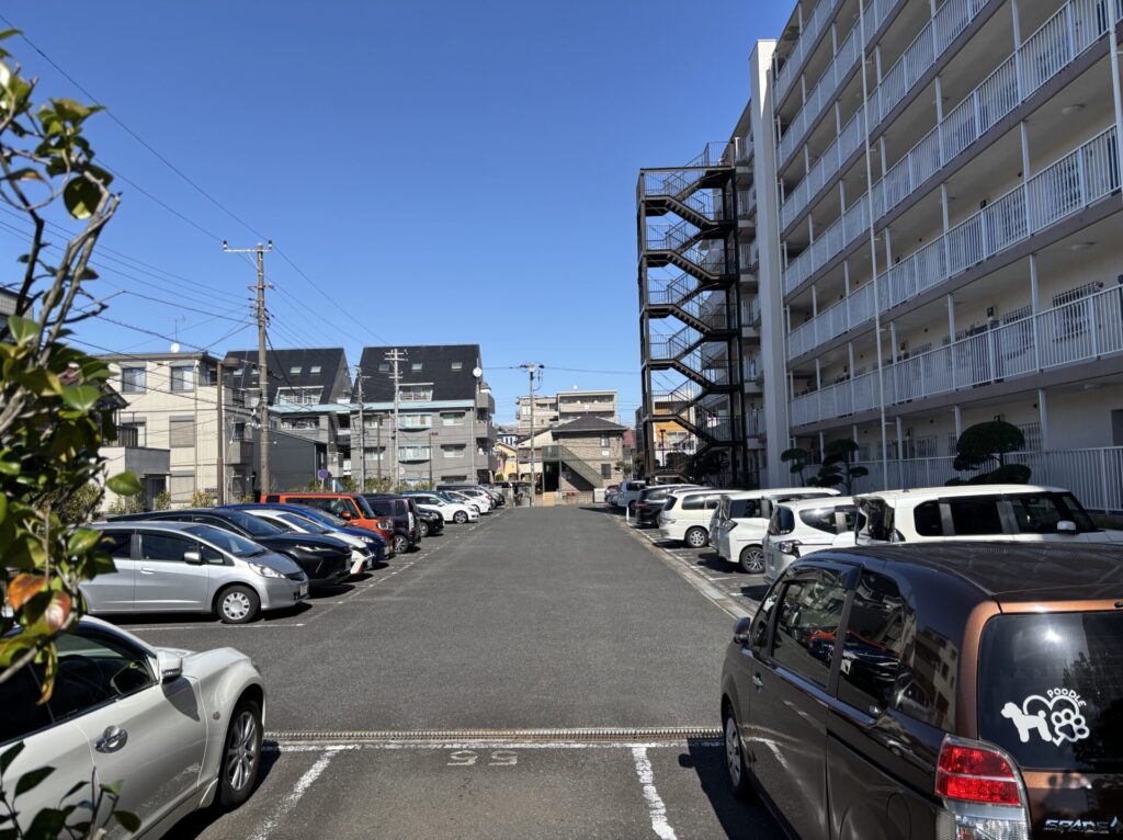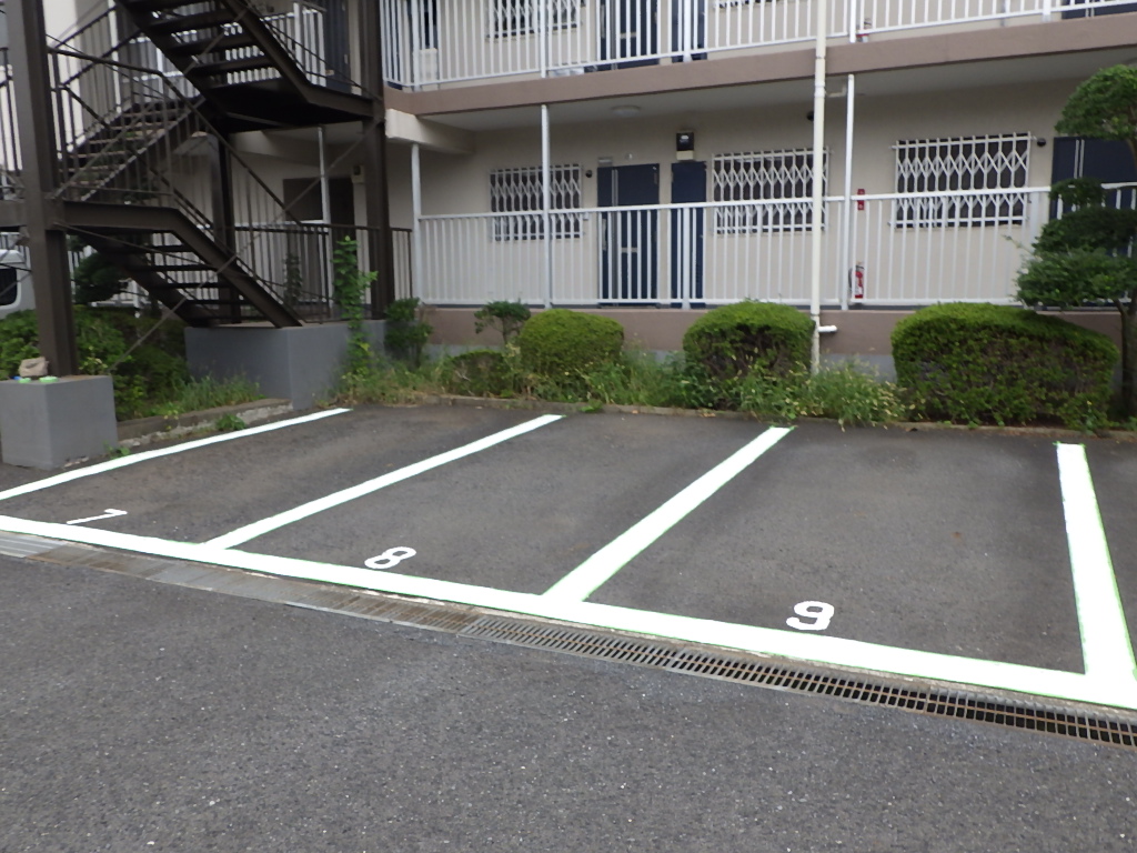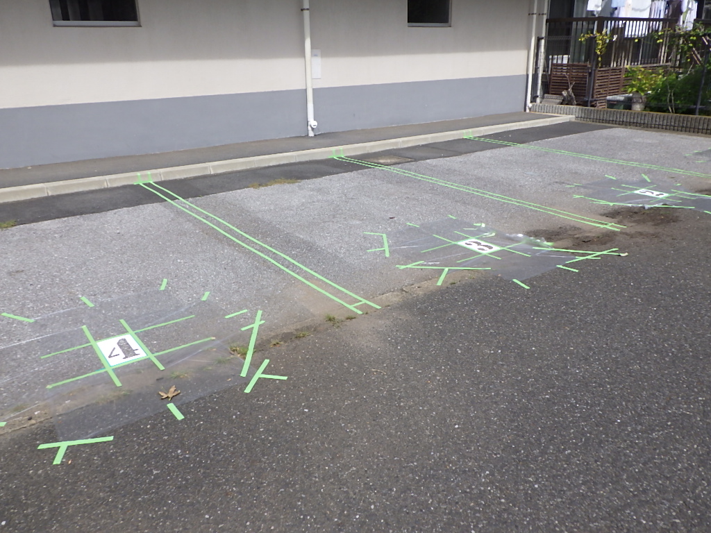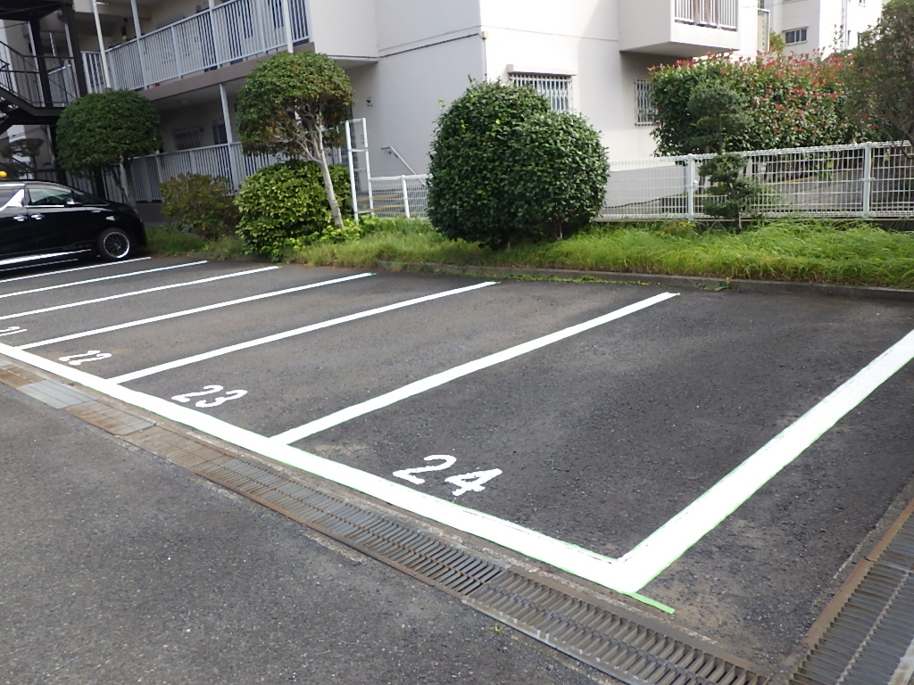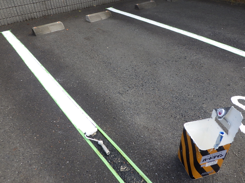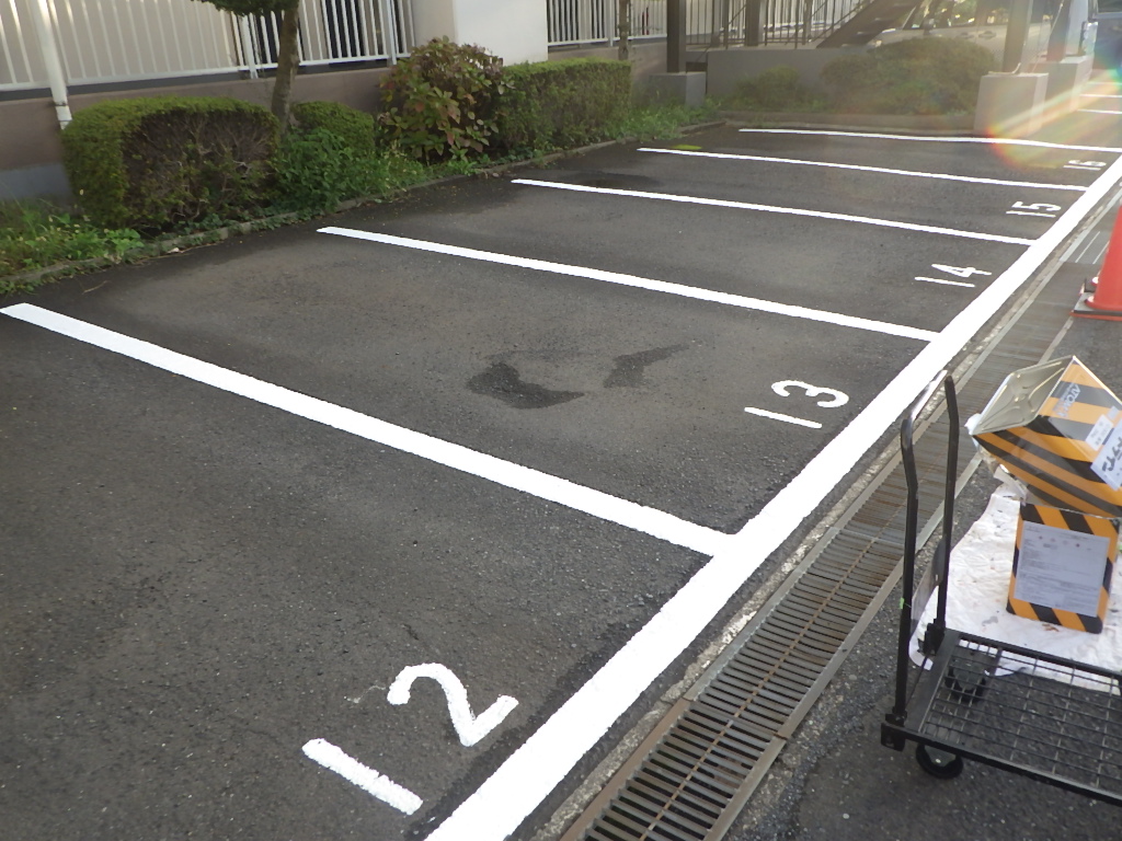 市川市R管理組合様より駐車場の白線引き及び番号表記塗装工事をご依頼頂きました。
