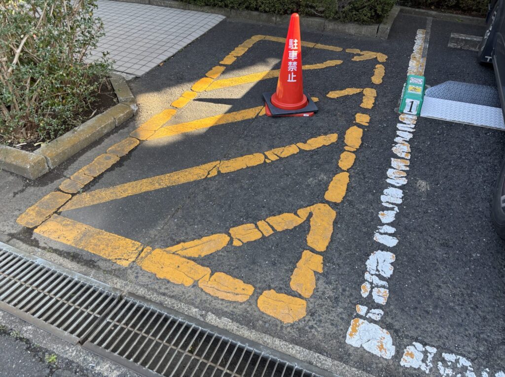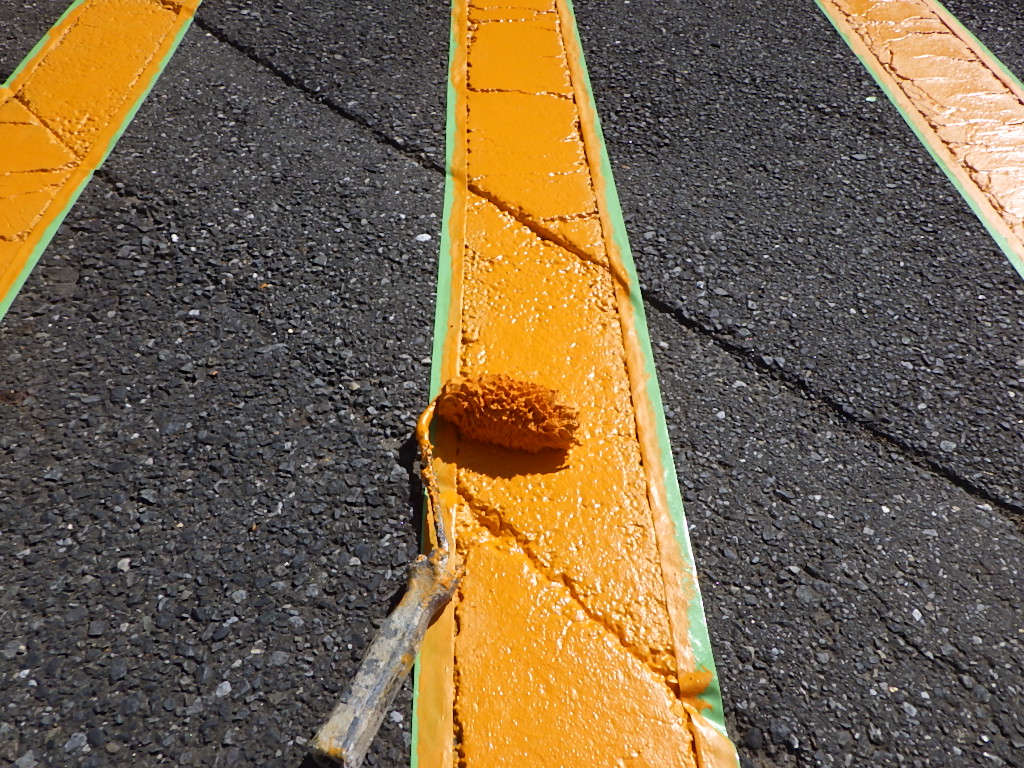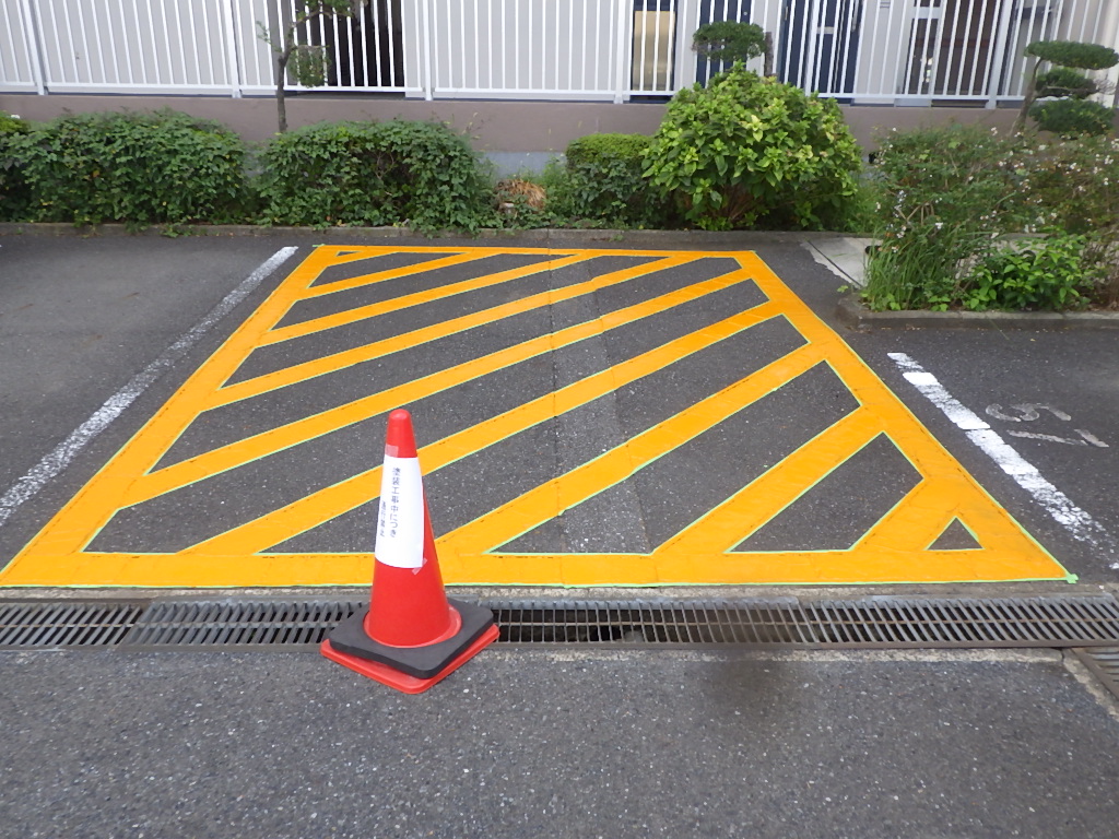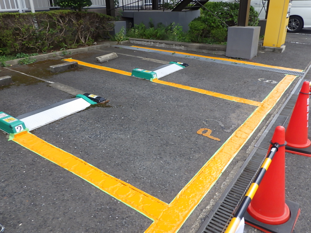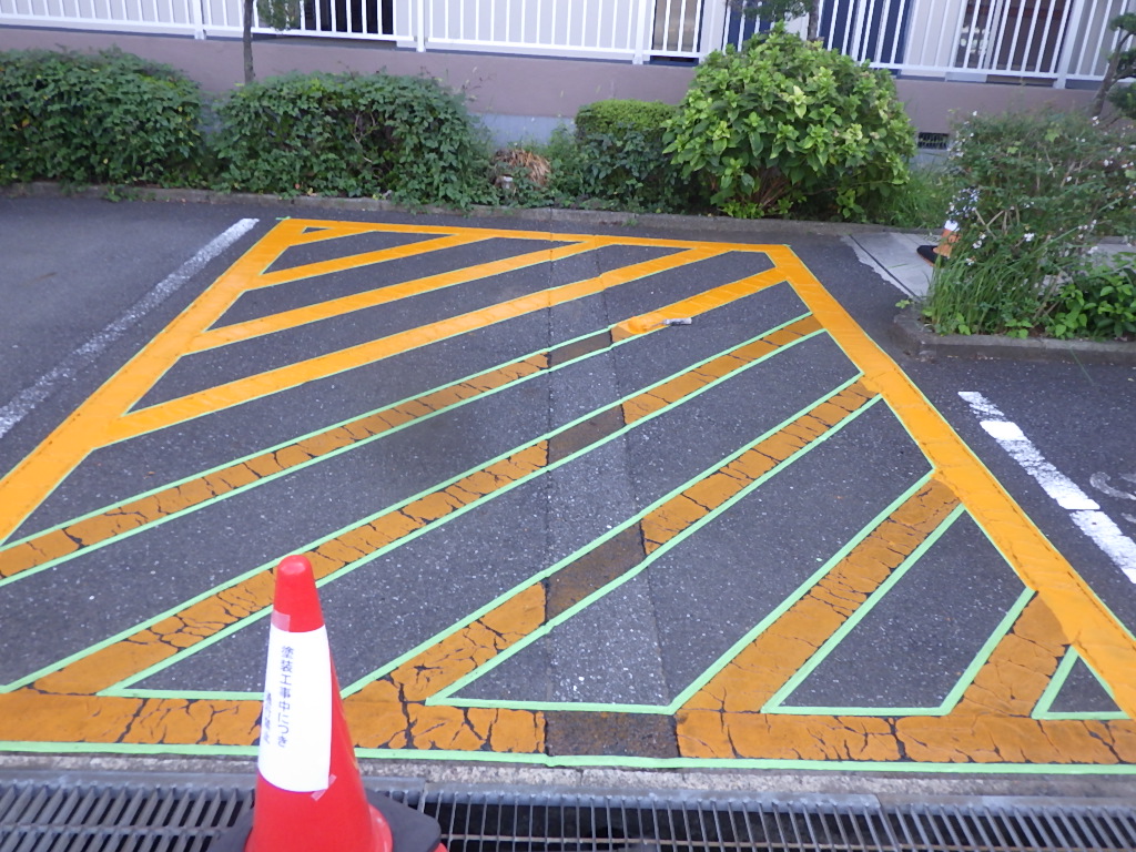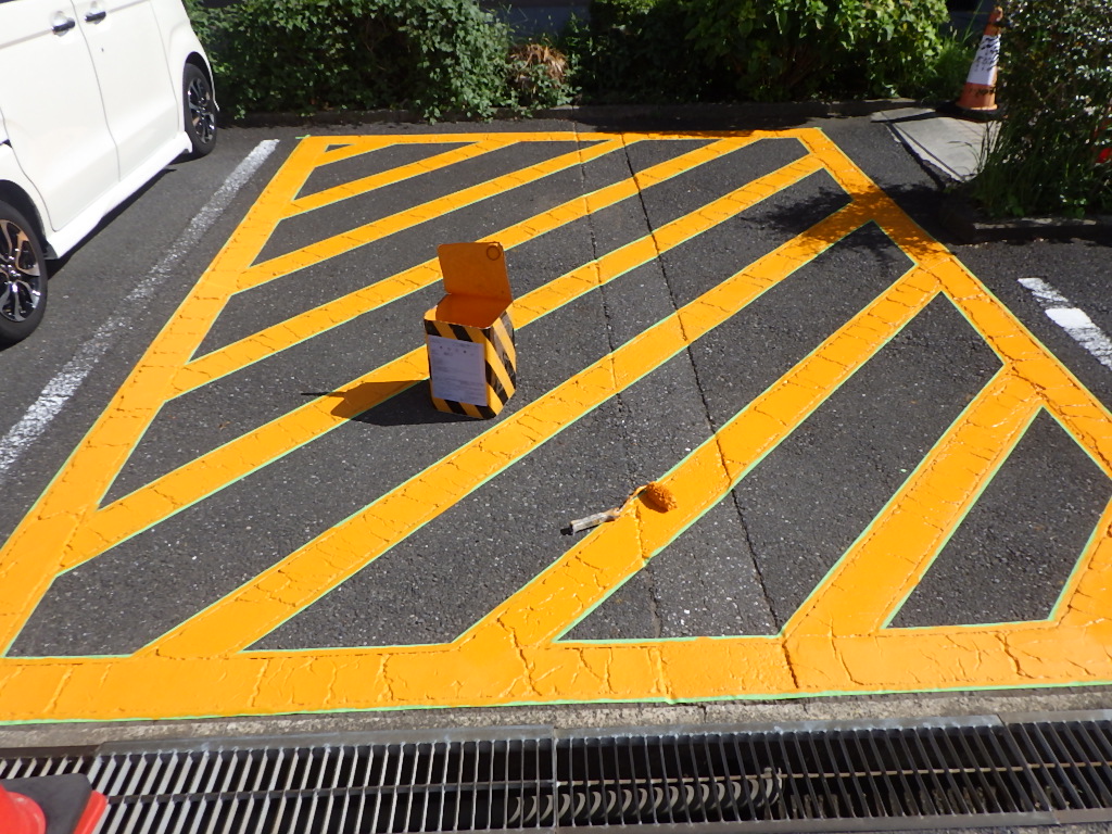 白線・番号表記以外にも安全地帯(黄色)も併用して施工させて頂きました。