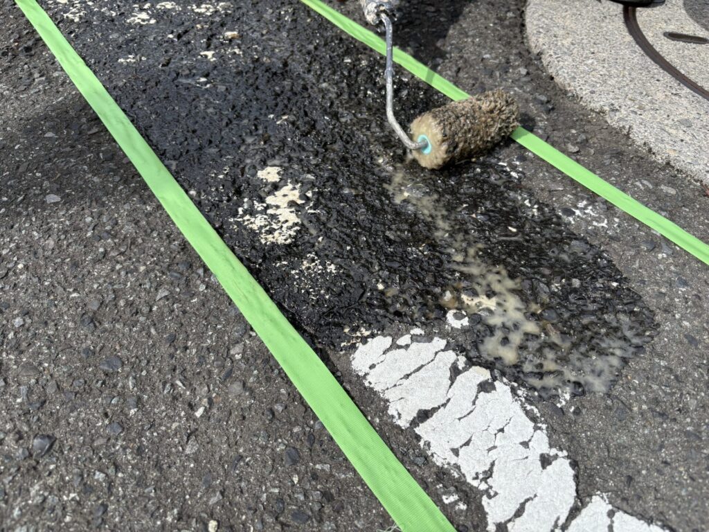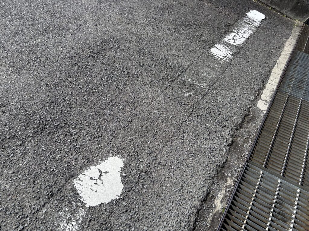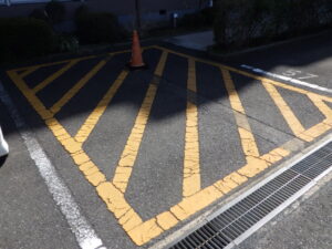 白線工事をご依頼頂いた理由を理事長にお尋ねした所、白線の見切りが不明確な点、事故が起きる前にきちんとした業者に依頼をしてきれいにして頂きたいとの思いで業者をお探しになられたいたそうです。