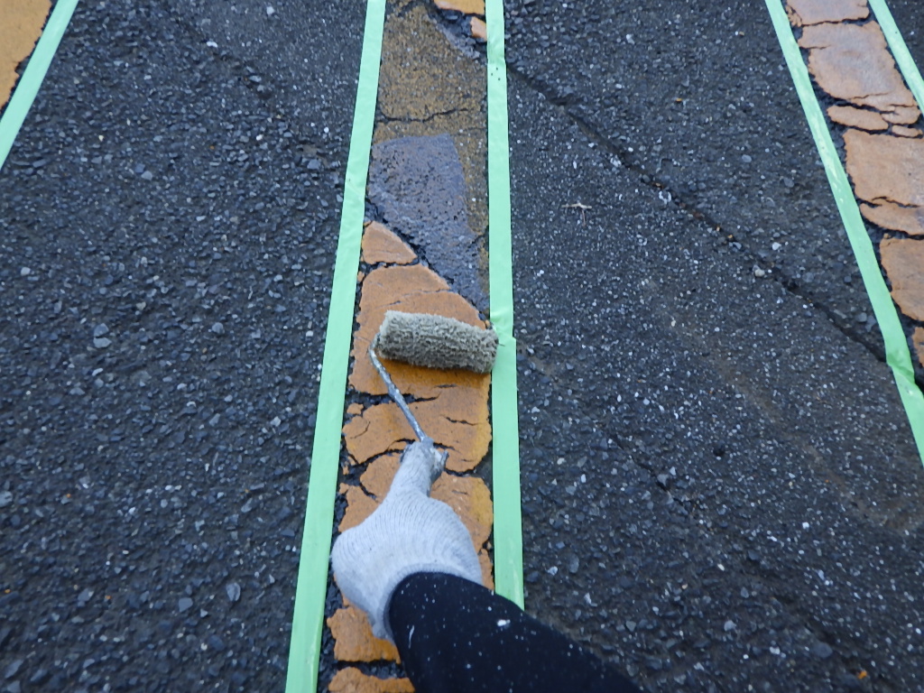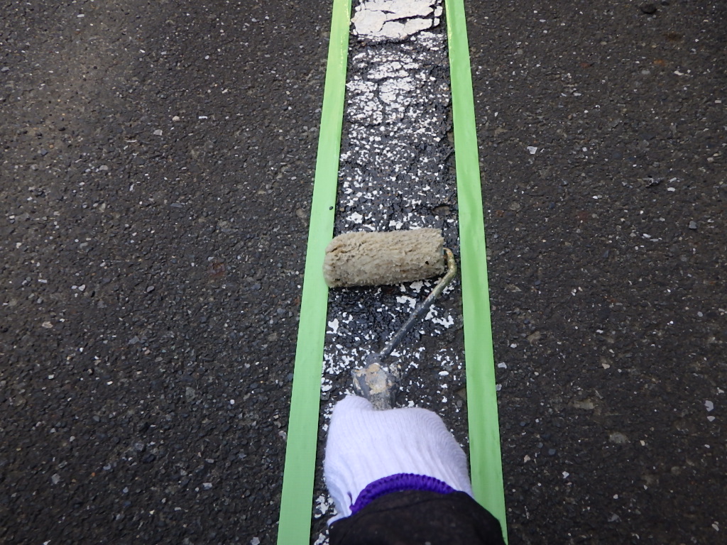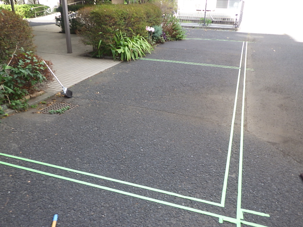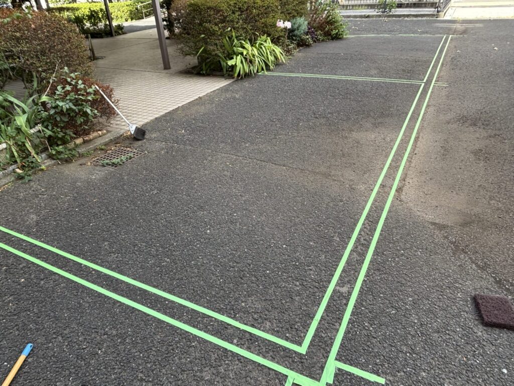 【施工前養生ラインテープ張り】