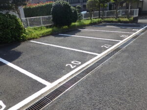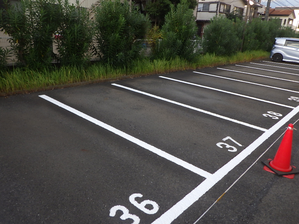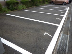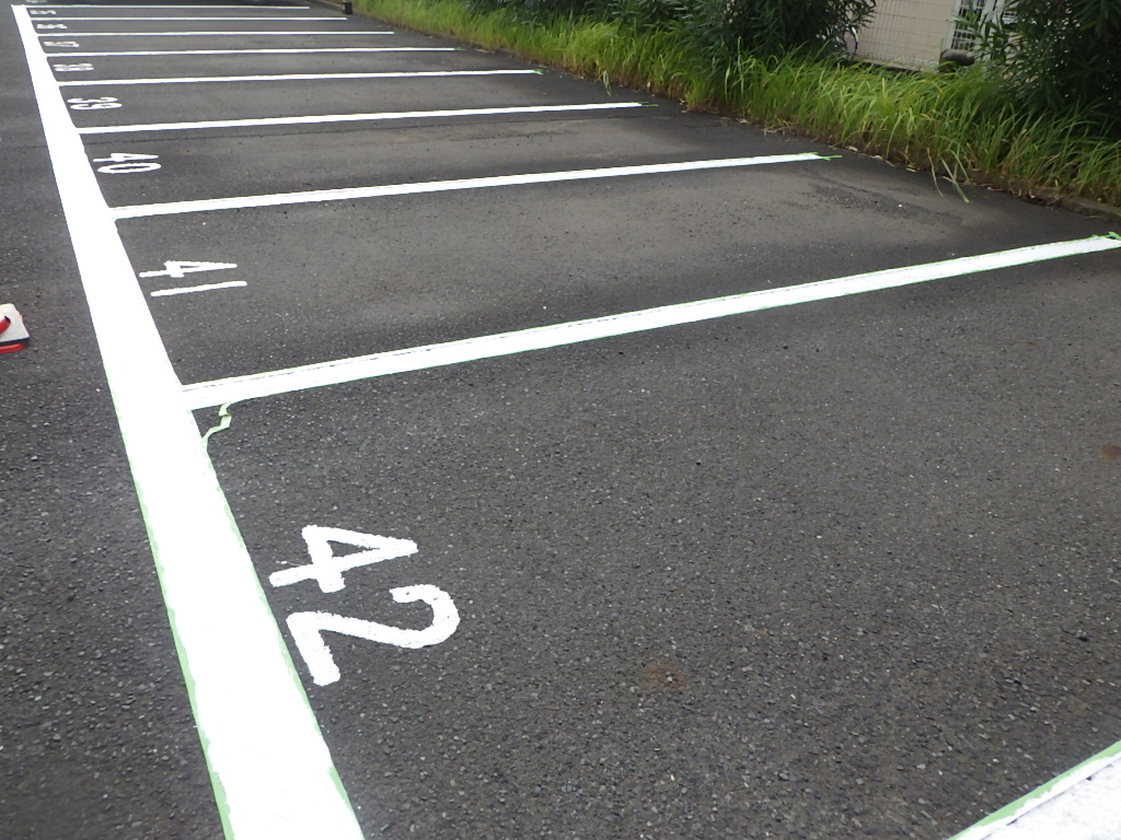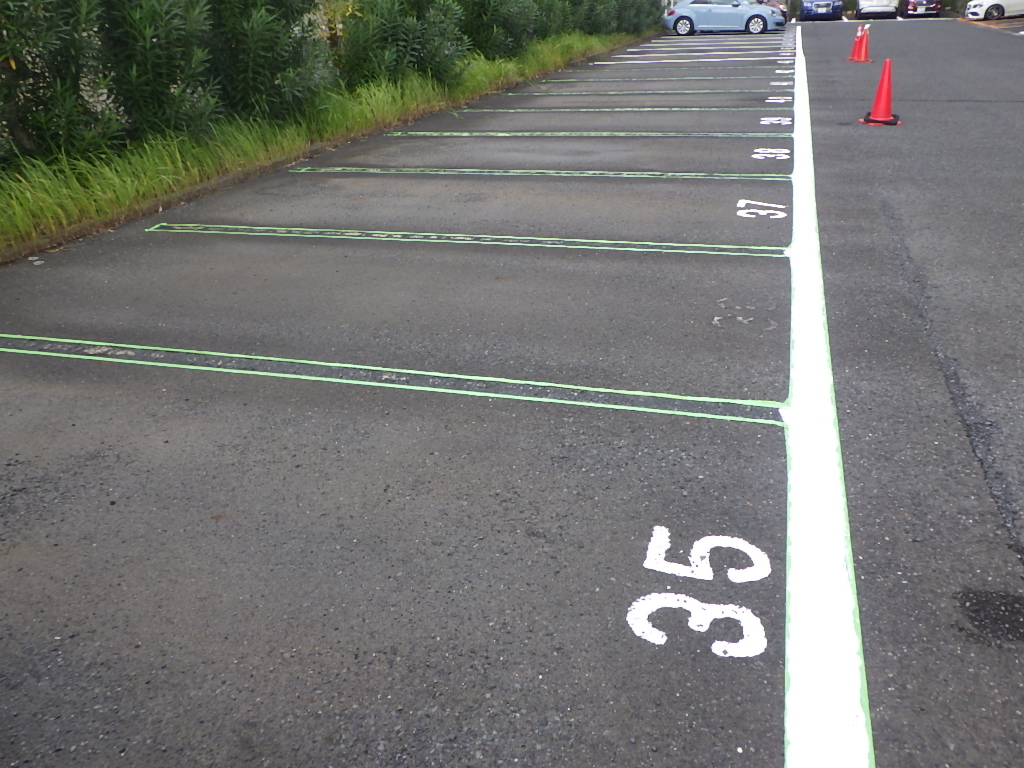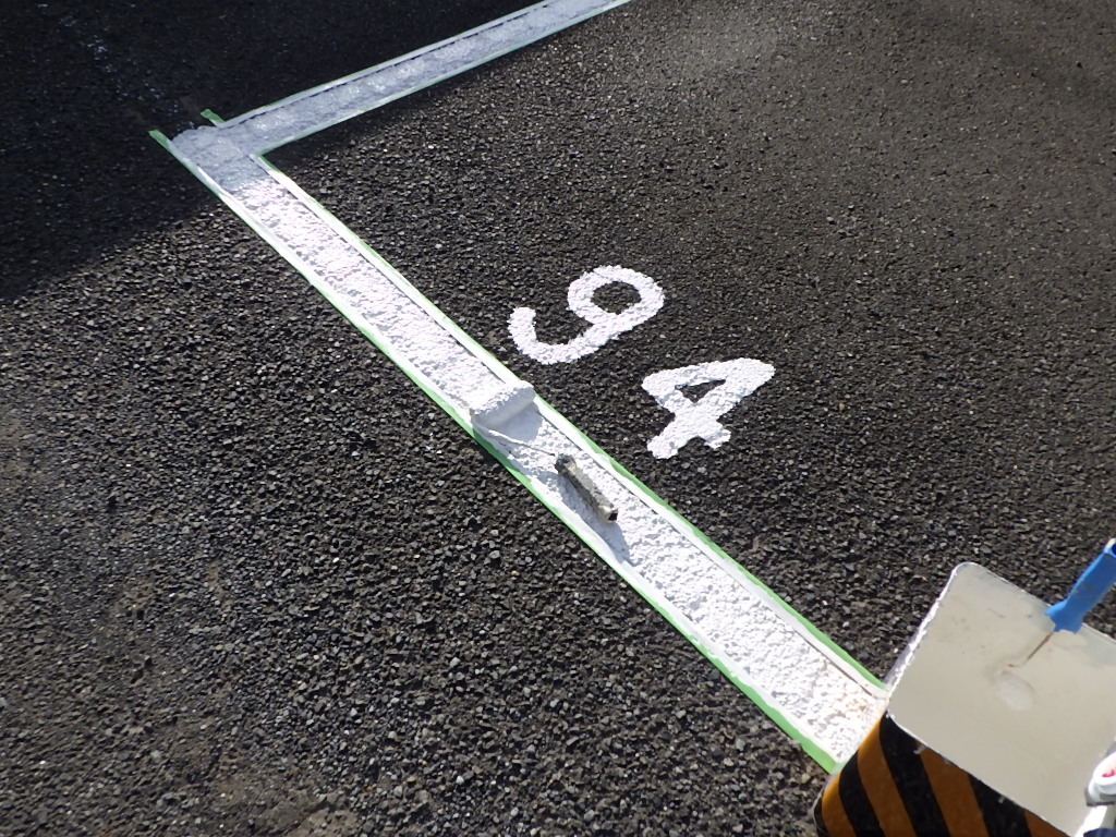 駐車場の白線引きや番号表記・安全地帯・停止線などのお塗り替え・新規での施工もお任せ下さいませ。