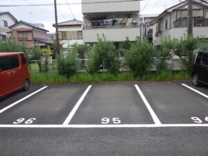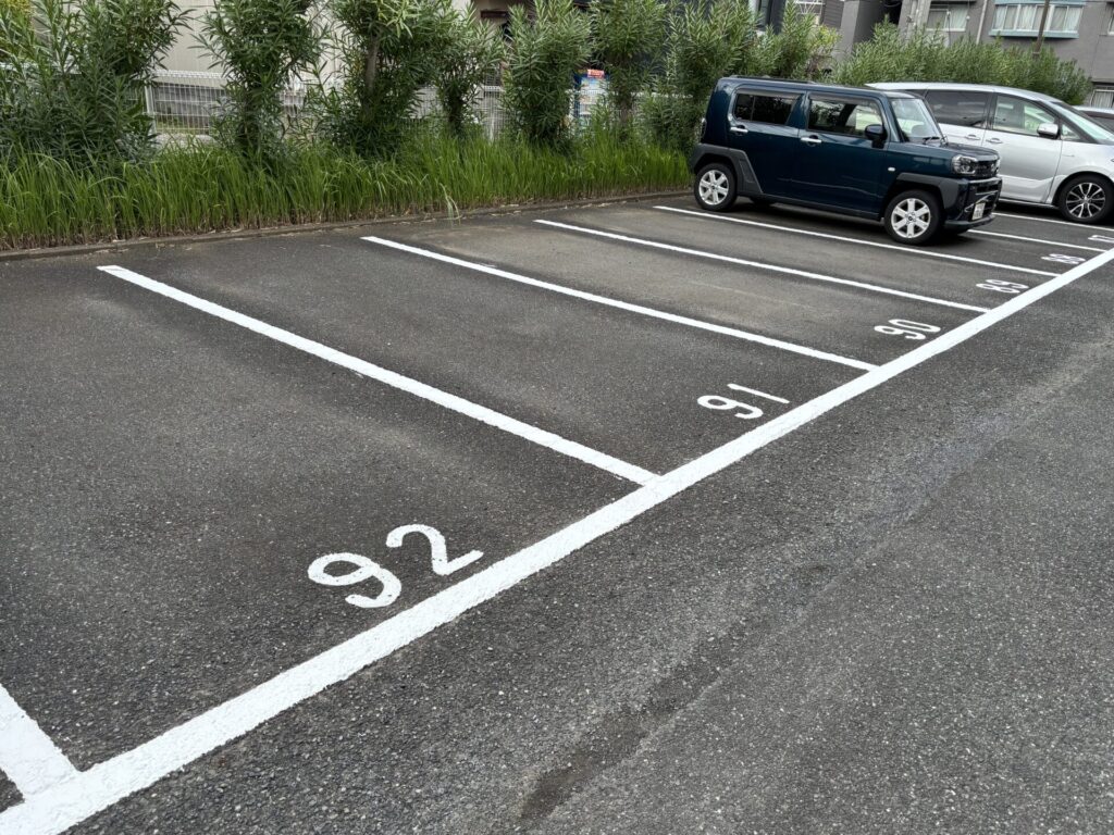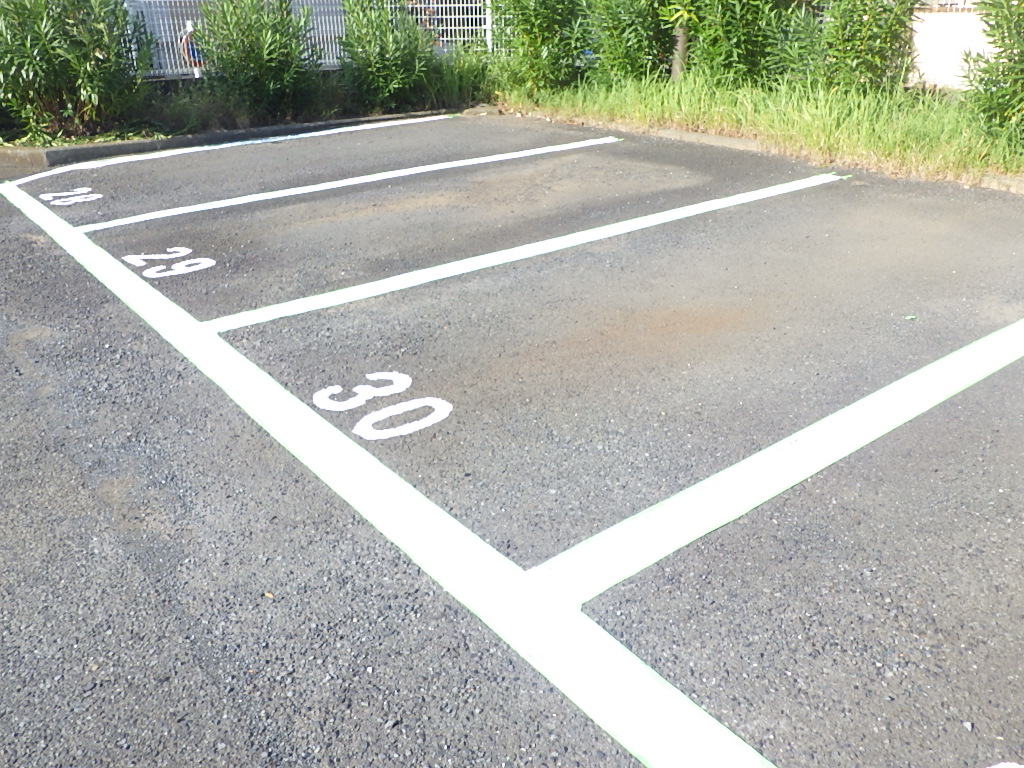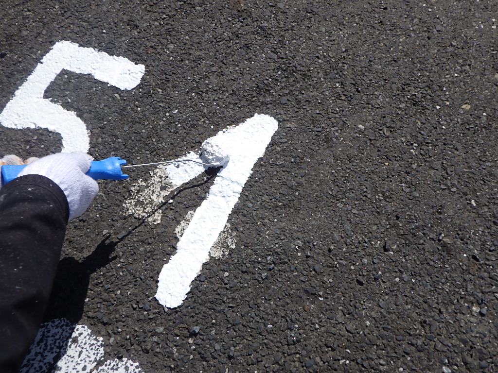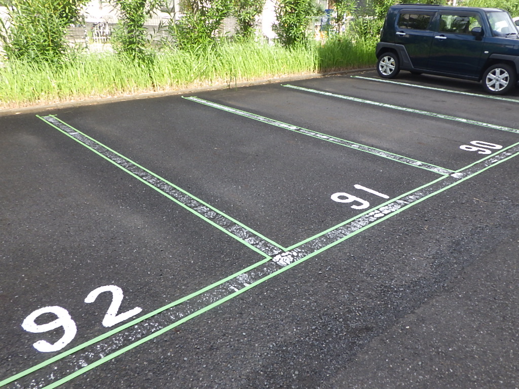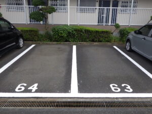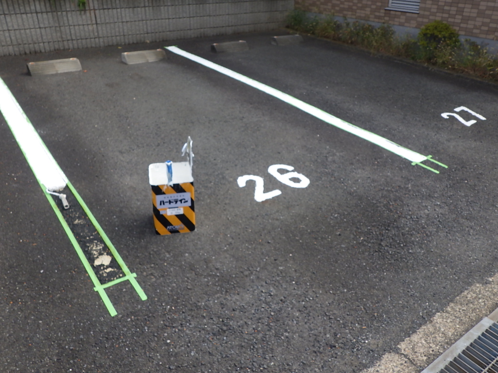 駐車場の白線引きや番号表記・安全地帯・停止線などのお塗り替え・新規での施工もお任せ下さいませ。
