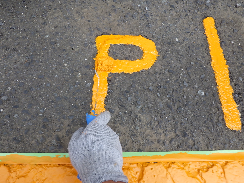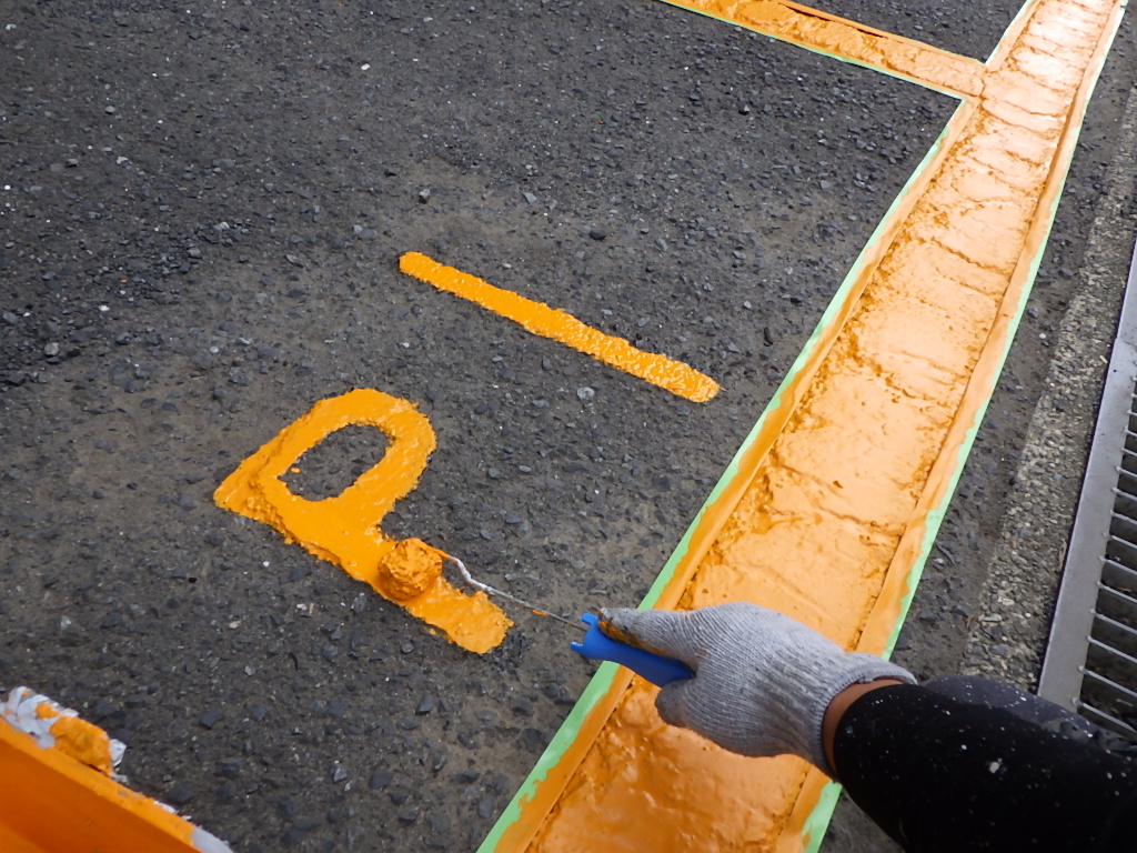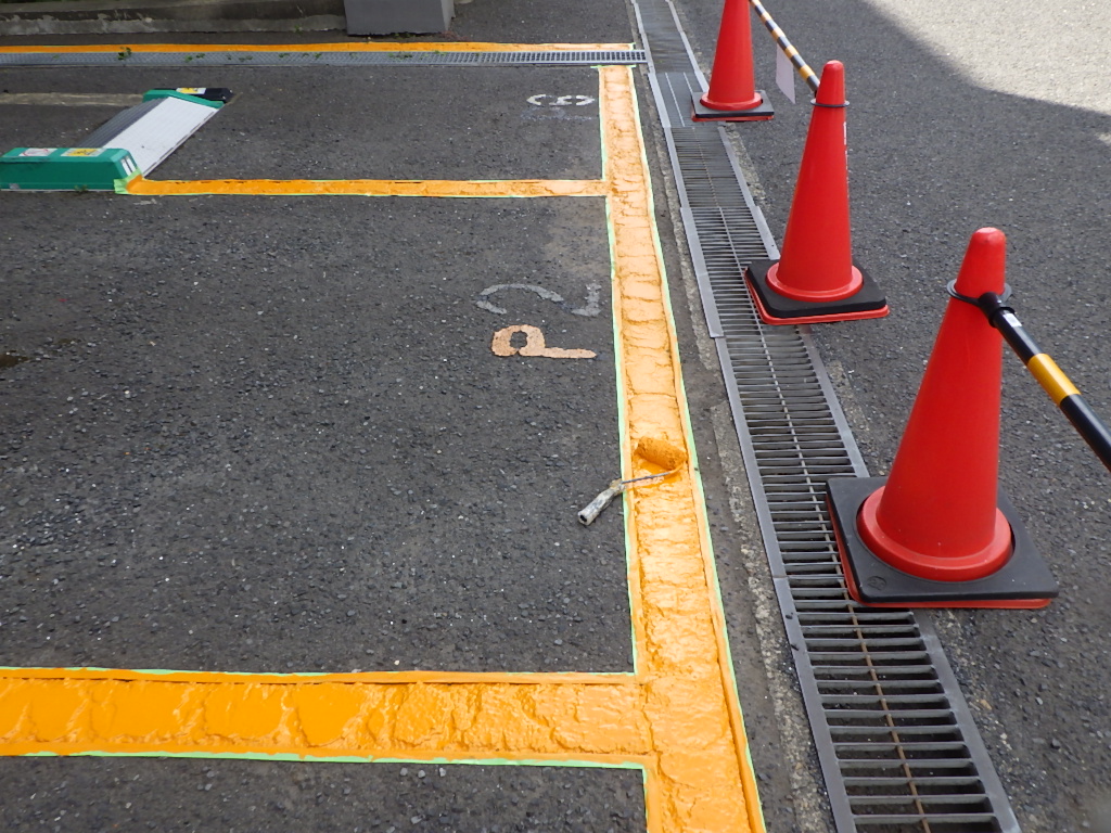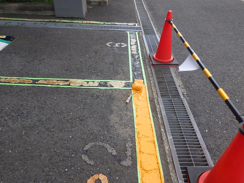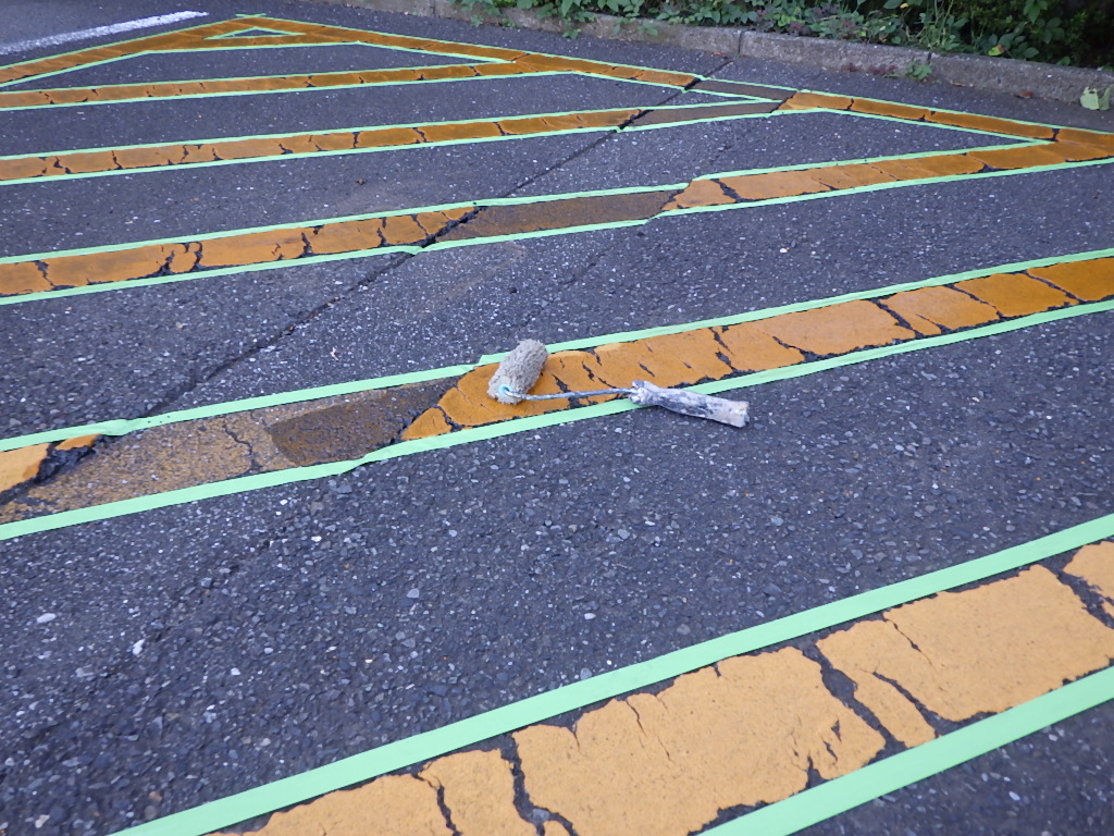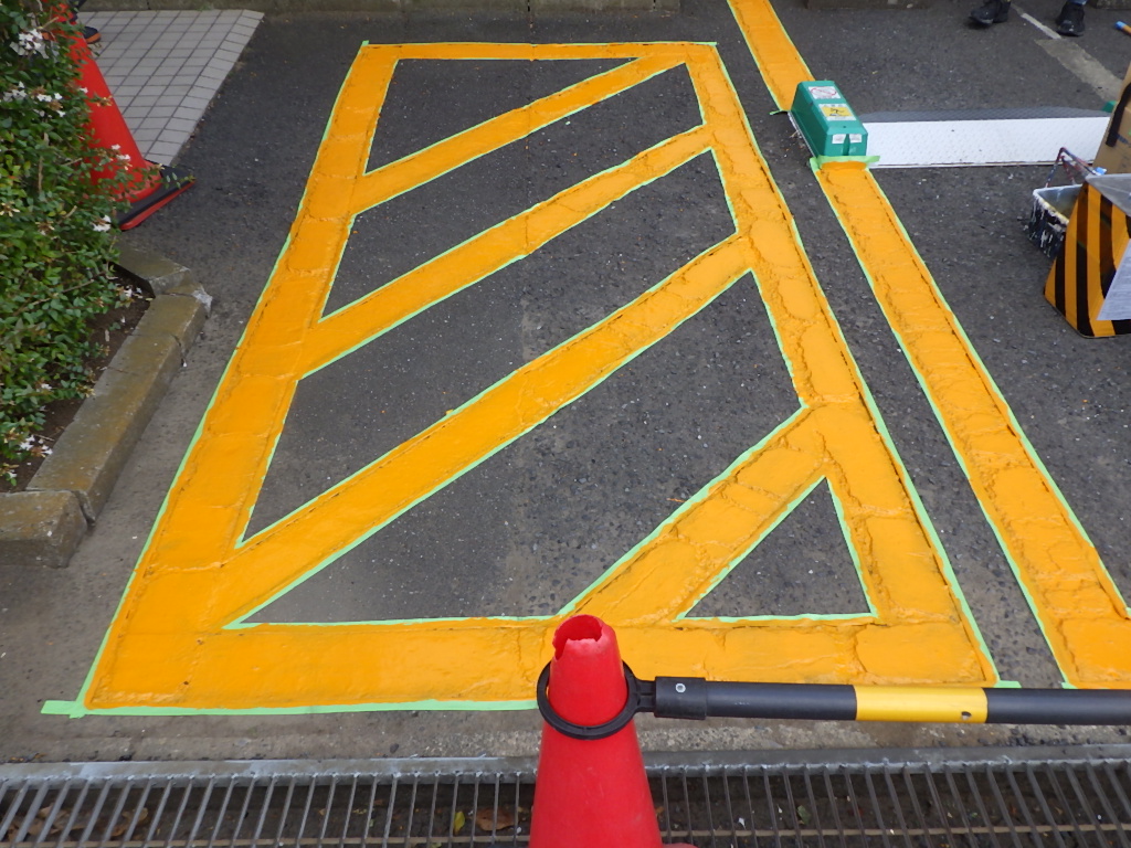 【安全地帯及び来客用P(黄色)施工】