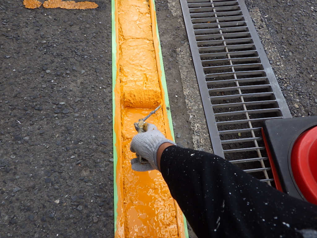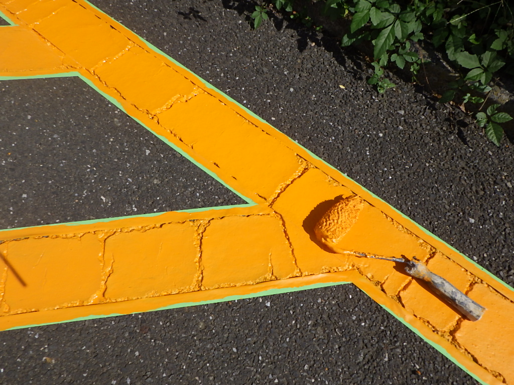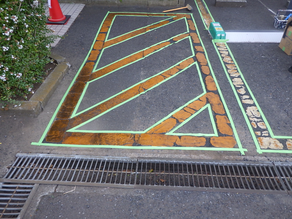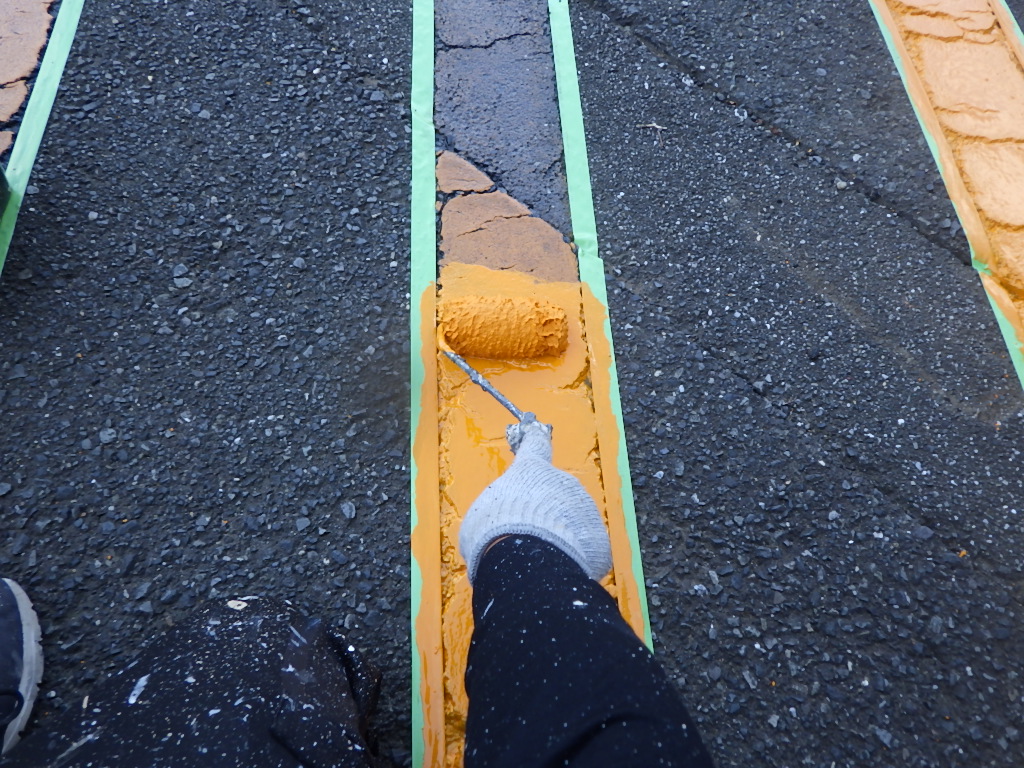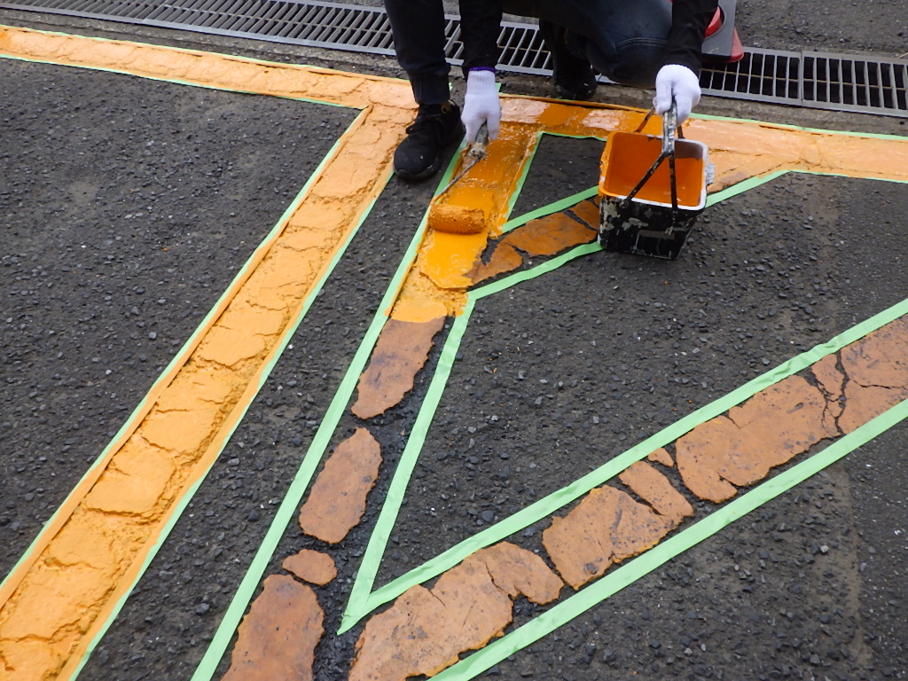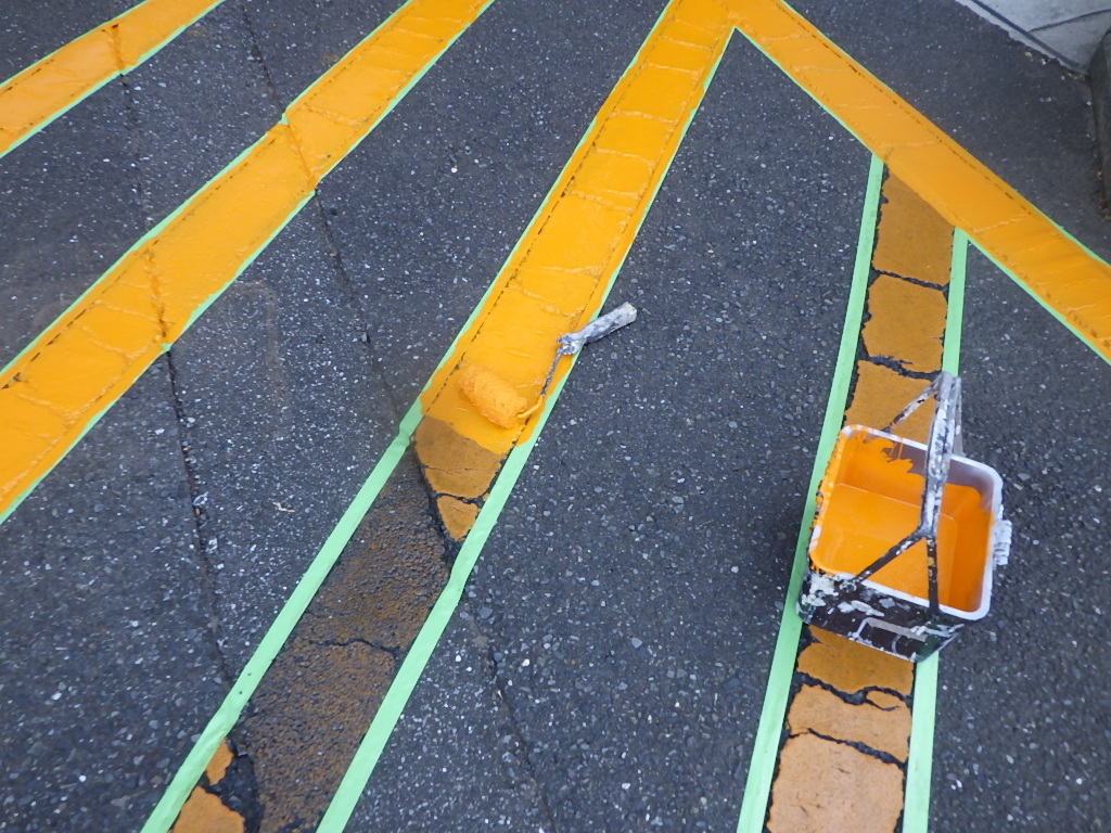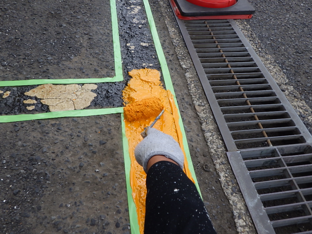【安全地帯及び来客用P(黄色)施工】